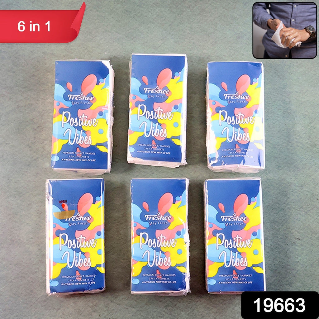 This premium 6-in-1 pocket tissue pack is designed to deliver ultimate convenience, hygiene and softness wherever you go. Each pack contains ultra-soft, skin-friendly tissues that are ideal for facial use, wiping hands, removing sweat, light spills and everyday personal care. The compact and lightweight design makes them easy to carry in your pockets, handbags, backpacks, office drawers, car dashboards and travel kits. Made using fresh, hygienic and high-quality tissue paper, these tissues provide a gentle touch on your skin without causing irritation. Whether you are traveling, working, studying or spending time outdoors, this 6-pack set ensures you always have clean, absorbent tissues within reach.