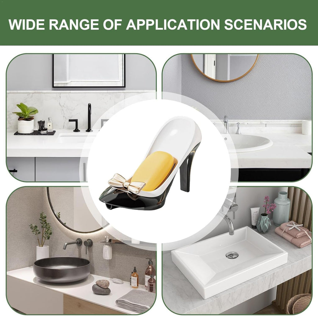 • Enhance Your Bathroom Ambiance: Adding a touch of light luxury style, this suction cup soap dish is not just practical, but also a work of art. Featuring an exquisite bow decoration, it comes in black and white colour scheme and is crafted with great materials.