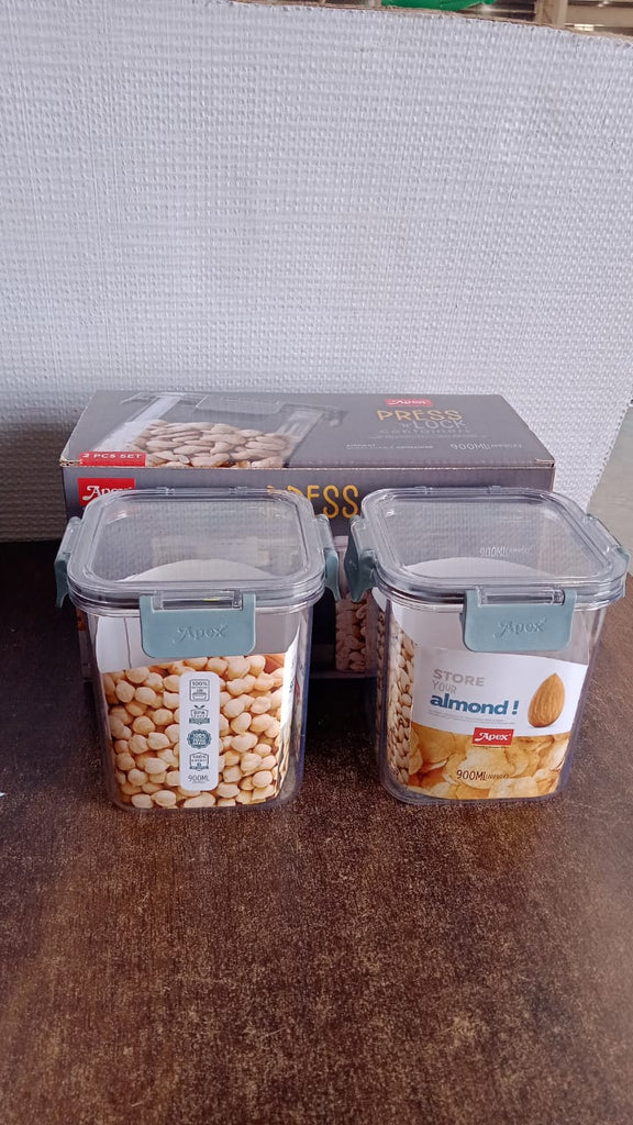 Apex Press N’ Lock Square Food Storage Container Set – 2 Pcs – 900ML Approx – Airtight Polycarbonate Kitchen Containers with Lock Clip Lid
