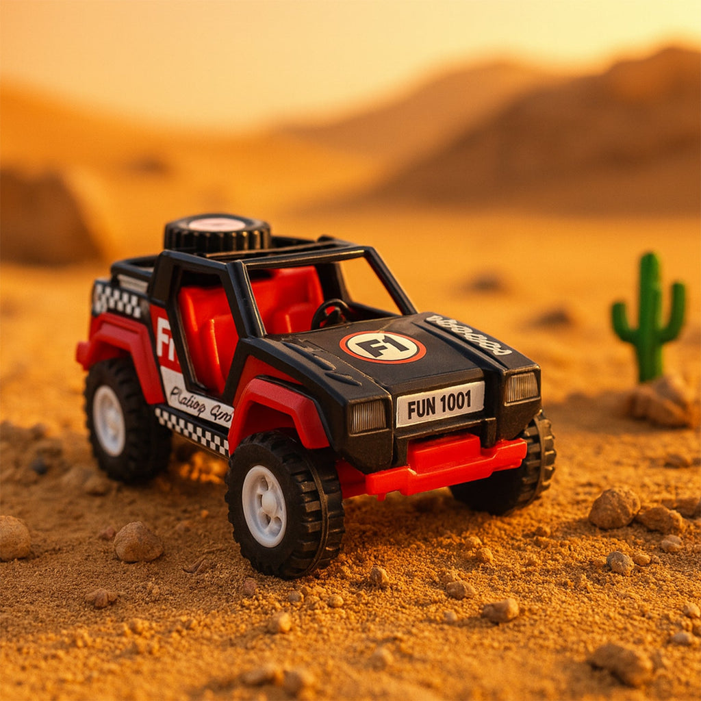 Funwoods Free-Wheel Racing Jeep Toy Car – Sturdy Wide-Tyre Push & Go Vehicle for Kids, Smooth Rolling Action, Textured Grip Wheels & Open-Cabin Design (Durable Playroom/Gifting Toy)
